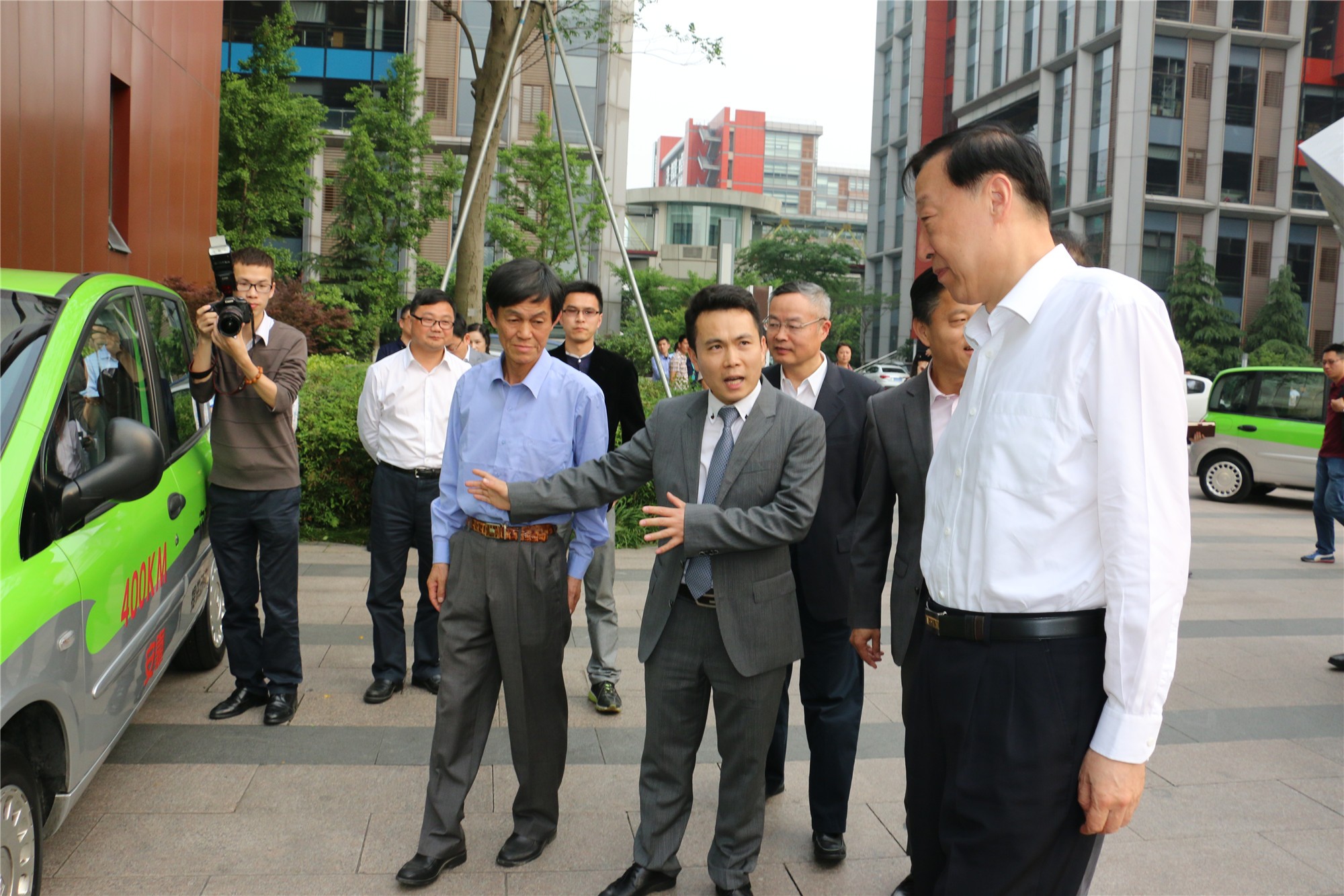 (罗书记参观装载安靠电源系统的众泰电动车)